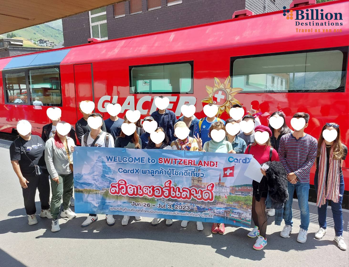 บิลเลี่ยน เดสติเนชั่น ขอขอบพระคุณ บริษัท คาร์ด เอกซ์ จำกัด ที่ไว้วางใจให้ทางเราได้ดูแลการจัดทริปท่องเที่ยวระดับพรีเมี่ยมให้กับผู้โชคดีค่ะ ซึ่งครั้งนี้ลูกค้าเลือกท่องเที่ยว ณ ประเทศสวิตเซอร์แลนด์ ช่วงวันที่ 26-3 กรกฏาคม 2566 นำทุกท่านเดินทางท่องเที่ยวทั่ประเทศสวิตเซอร์แลนด์ แวะแลนด์มาร์กสำคัญ ชมวิวทิวทัศน์สุดอลังกาลและอิ่มอร่อยไปกับอาหาร เต็มไปด้วยความสนุกสนาน รอยยิ้ม และความประทับใจ ทางทีมงานต้องขอบพระคุณจริงๆค่ะ