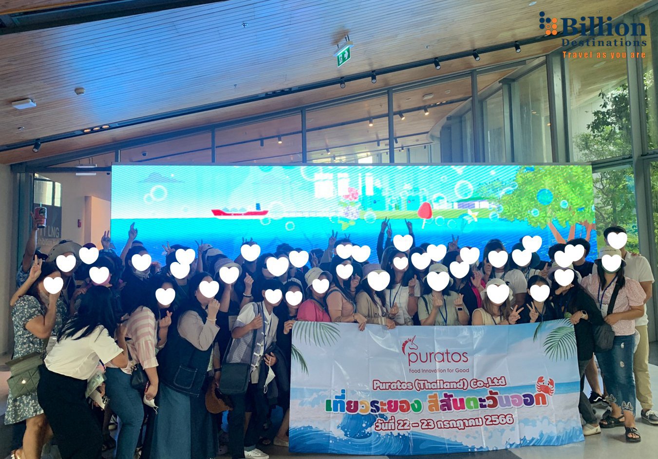 บิลเลี่ยน เดสติเนชั่น ขอขอบพระคุณ บริษัท พูราโต๊ส (ประเทศไทย) จำกัด ที่ไว้วางใจให้เราได้ดูแลจัดกิจกรรม Outing สุดพิเศษอีกครั้ง ในปีนี้ค่ะ ซึ่งครั้งนี้ลูกค้าเลือกเดินทางไปทำกิจกรรมที่จังหวัดระยอง กิจกรรม Team Building ริมชายหาดสุดมันส์ เสริมสร้างความสามัคคีภายในองค์กร สนุกสนานกับงานเลี้ยงตอนเย็นที่เต็มไปด้วยความประทับใจ ทางทีมงานต้องขอบพระคุณจริงๆค่ะ